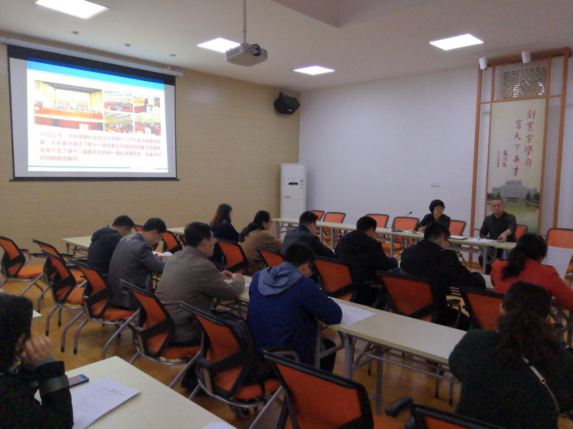 杨晓果从党代会盛况、报告起草情况、报告主要精神与会议决议四个方面全面传达党代会精神和大会报告内容。她介绍,大会通过了舒歌群同志代表第十一届党委所作的《潜心立德树人,执着攻关创新,努力办出中国特色世界一流大学》的报告,通过了纪律检查委员会所作的《贯彻落实十九大精神、深入推进全面从严治党,为建设中国特色、科大风格的世界一流大学提供坚强政治保证》的工作报告,选举产生了新一届党委委员和纪委委员。会议回顾了我校第十一次党代会以来学校各项事业取得的可喜成绩;总结了中国科大六十年办学宝贵经验,全面分析了学校发展面临的形势;深入思考,明确了学校在近期、中期和远期的发展目标;提出围绕“潜心立德树人、执着攻关创新”两大核心任务,着力推动四大支撑工程,并把党的政治建设摆在首位,全面推进党的建设和学校各项工作,以实际行动贯彻落实习近平总书记的重要指示精神。杨晓果要求各级团组织认真组织团员青年学习领会党代会内容和精神,号召广大青年学生凝心聚力,以实际行动助力我校建成具有中国特色、科大风格的世界一流大学。