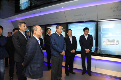 李锦斌首先来到科教创新成果展厅,听取了包信和校长关于学校教育体系、科技创新体系以及近期发展成果的介绍。在获悉中国科大今年前四个月在CNS(《Cell》、《Nature》、《Science》)正刊上共发表6篇论文,另有3篇已被接收时,李锦斌十分高兴。在听到中国科大科教融合的具体做法和取得的成绩时,李锦斌表示,中国科大协同创新做得非常好,利用中国科学院的科研优势,合作共享、互利共赢,不仅产出了一批高水平的成果,还培养了大批优秀人才。要将这种体制机制集成起来,为加快建设长三角科技创新共同体做出贡献。随后,李锦斌听取了学校关于基础研究、LAMOST大科学装置、生物基新材料、机器人佳佳所取得的新进展介绍。