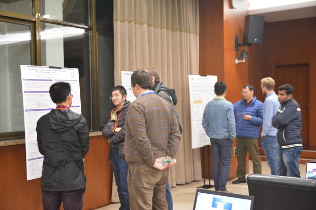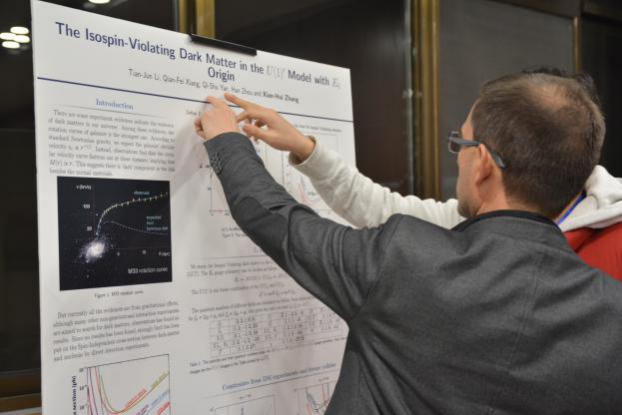 19日下午,会议还安排了墙报展示。来自中国科学技术大学、中国科学院大学、北京大学、中国科学院理论物理研究所、中国科学院高能物理研究所、南京师范大学、中山大学、华中科技大学、武汉大学、华中师范大学、重庆大学、韩国全南大学等高校的18位同学以墙报形式展示了相关科研成果,与会人员认真观摩了墙报内容,并与作者积极讨论。