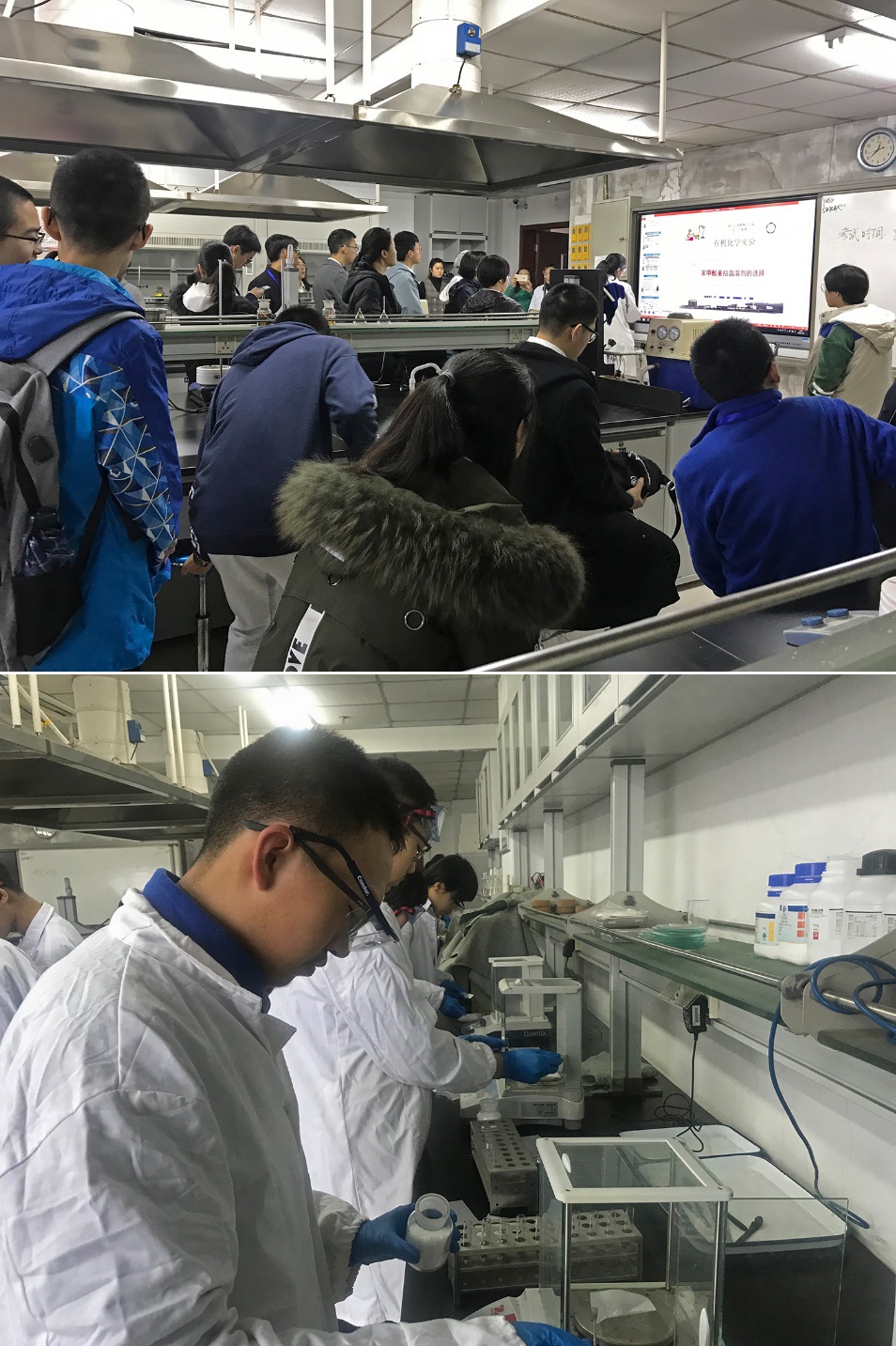 2日下午,学员们前往中国科大化学实验中心参观学习,并在实验中心老师的指导下进行了一些基础的实验操作,加深了对化学实验中常用仪器和基本操作方法的了解。
