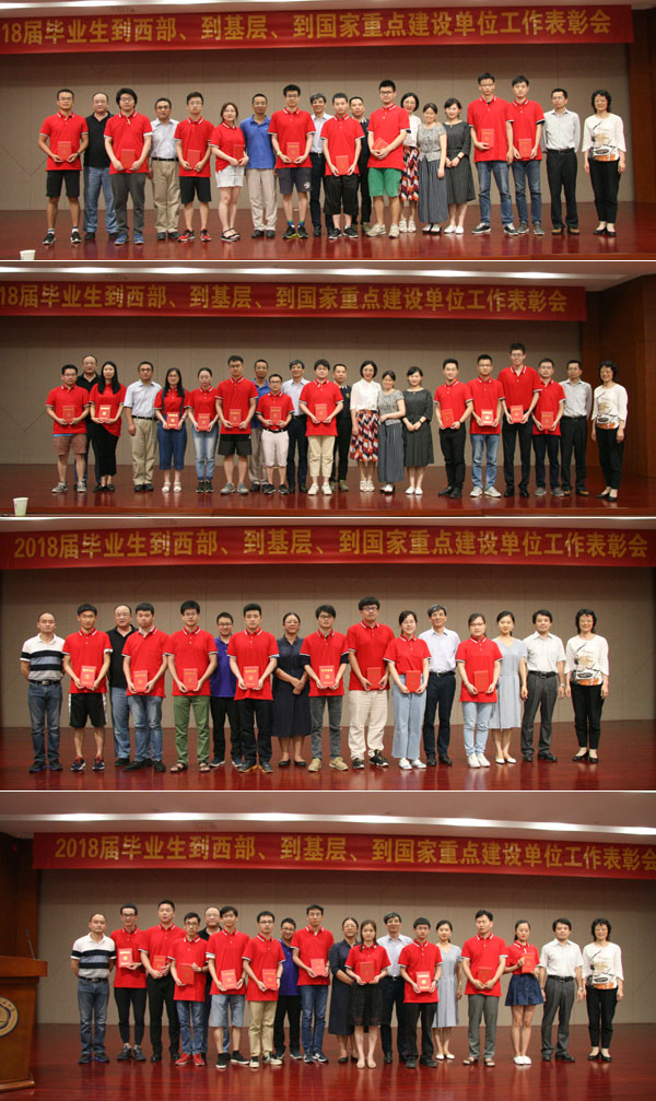 6月14日下午,学校在东区师生活动中心五楼国际会议厅召开2018届毕业生到西部、基层和部分国家重点单位工作表彰会。副校长陈初升出席会议并讲话。各学院(单位)毕业生就业工作负责人、招生就业处就业办全体老师及受表彰的毕业生等参加了会议。会议由招生就业处处长杨锋主持。