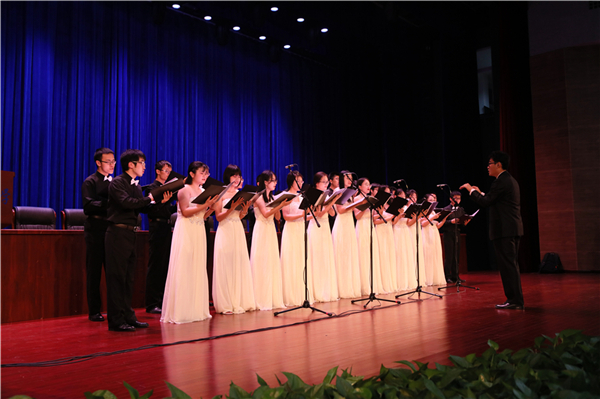 典礼开始前,大礼堂内播放了原创歌曲《自由星空》和宣传片《科大映像》,同学们共同回味美好校园生活的点点滴滴;学生合唱团现场演唱了《天空》《共和国之恋》,表达了对母校深深的祝福和眷恋之情。