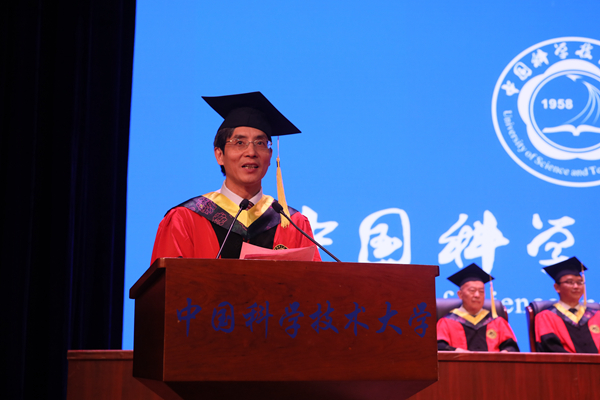 随后,陈初升副校长宣读了学校关于授予2018届本科毕业生学士学位、表彰各类优秀毕业生的决定。汪楠等244名同学荣获“2018年安徽省普通高等学校品学兼优毕业生”称号,邓宇皓等965名同学荣获“2018届校优秀毕业生”称号,学校对自愿到西部、到基层、到部分国家重点单位工作的彭绣球等80名同学,到中国科学院系统所属研究单位工作的丁冬生等30名同学,以及荣获2017-2018学年度先进毕业班集体称号的40个班级予以表彰。
