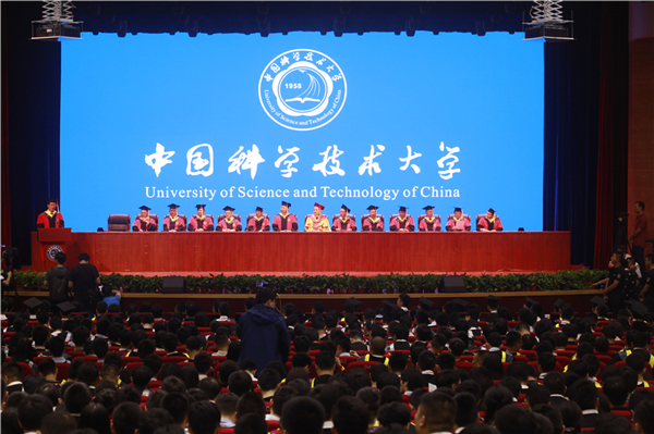 上午九点,毕业典礼暨学位着装授予仪式正式开始。校领导舒歌群、包信和、叶向东、陈初升、杨金龙、杜江峰,导师代表陈旸、李嘉禹、葛学武、陈卫东、刘斌、余玉刚,特邀校友代表李定,身着导师服在主席台就坐。毕业典礼由校党委副书记蒋一主持。