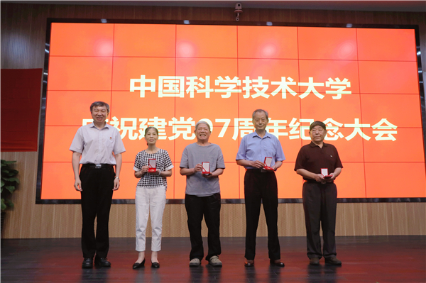 6月29日,在中国共产党成立97周年即将来临之际,中国科学技术大学隆重举行庆祝建党97周年纪念大会。大会分为集中收看中国科学院庆祝建党97周年表彰交流大会视频会议和我校表彰大会暨庆祝建党主题党课两个部分。校领导舒歌群、叶向东、陈晓剑、朱长飞、蒋一、王晓平、黄素芳,全体党员中层领导干部,教工、学生党支部书记,离退休老党员代表,2018年新党员参加了纪念大会。