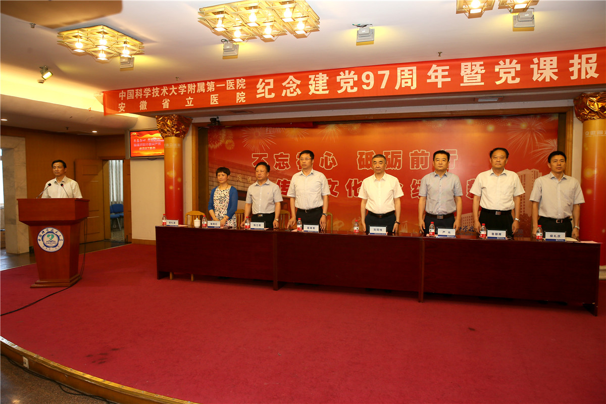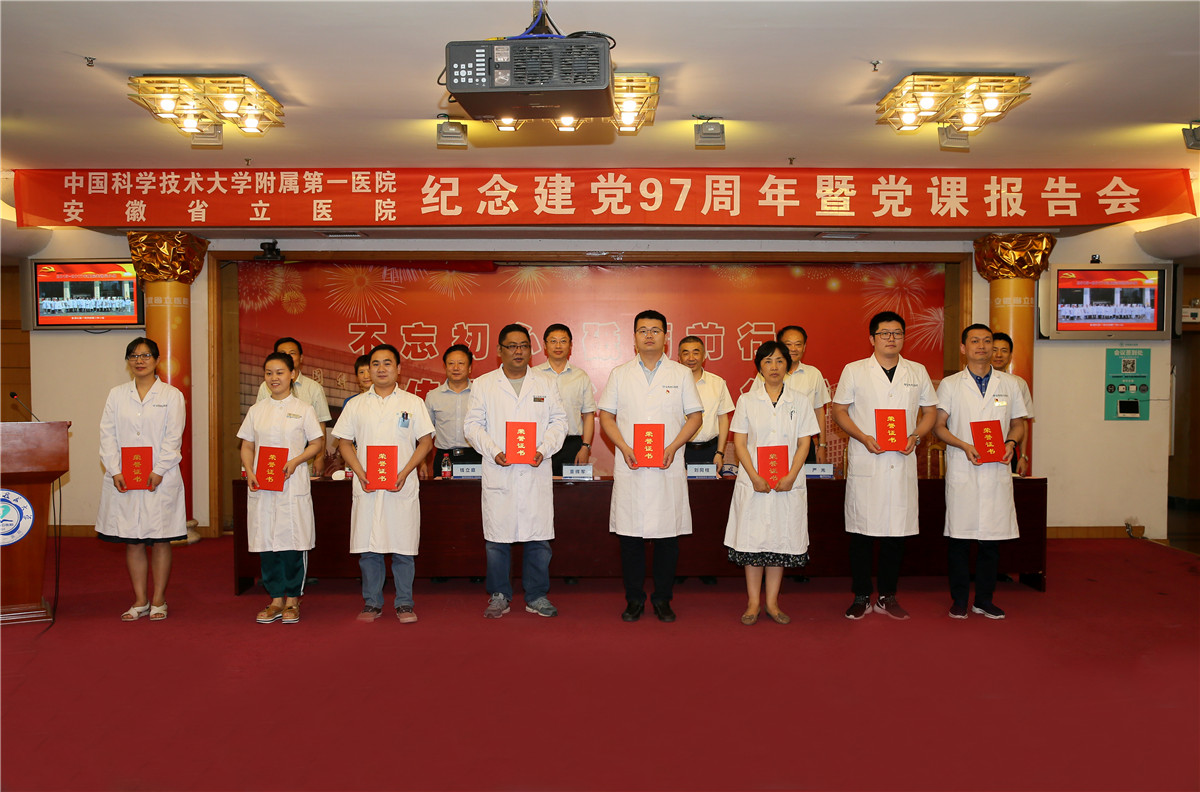 会上,刘同柱带领大家回顾了党的光荣历史,回顾了2017年医院取得的各项成绩。他强调,当前和今后一个时期,是医院发展大有作为的机遇期,是转向内涵建设的攻坚期,是实现创建国家区域医疗中心的决胜期,在省委省政府的坚强领导下,在中国科学技术大学和省卫计委双重管理下,全院党员干部职工一定要坚定信念、勇于担当,推动我院在新起点上实现新跨越。对此,刘同柱向各级党组织和全体党员提出了三点意见:一要旗帜鲜明讲政治,坚持不懈抓学习,把学懂弄通做实党的十九大精神作为首要政治任务,牢固树立“四个意识”,全面提高新时代省医人的政治站位。二要一心一意谋发展,蹄疾步稳抓改革,坚定“一流医院”目标不动摇,进一步深化校院融,久久为功,全面推动省医发展新突破。三要聚精会神抓党建,充分发挥院党委领导作用和政治作用,持之以恒优化政治生态,狠抓基层党组织标准化建设,推动全面从严治党向纵深发展。