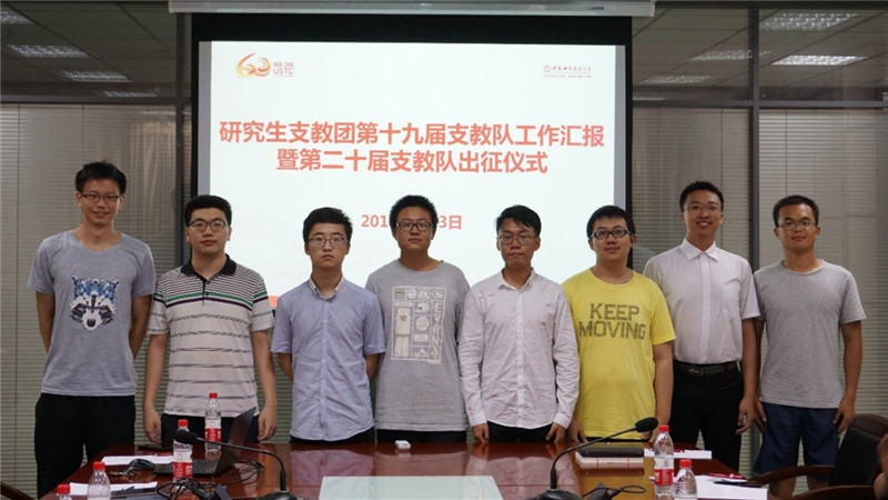 7月3日下午,中国科大研究生支教团第十九届支教队工作汇报暨第二十届支教队出征仪式在东区图书馆609会议室举行。党委宣传部、学生工作部(处)、招生就业处、教务处、附属中学等单位有关负责同志,第十九届、二十届支教队全体队员出席了出征仪式。仪式由校团委书记杨晓果主持。