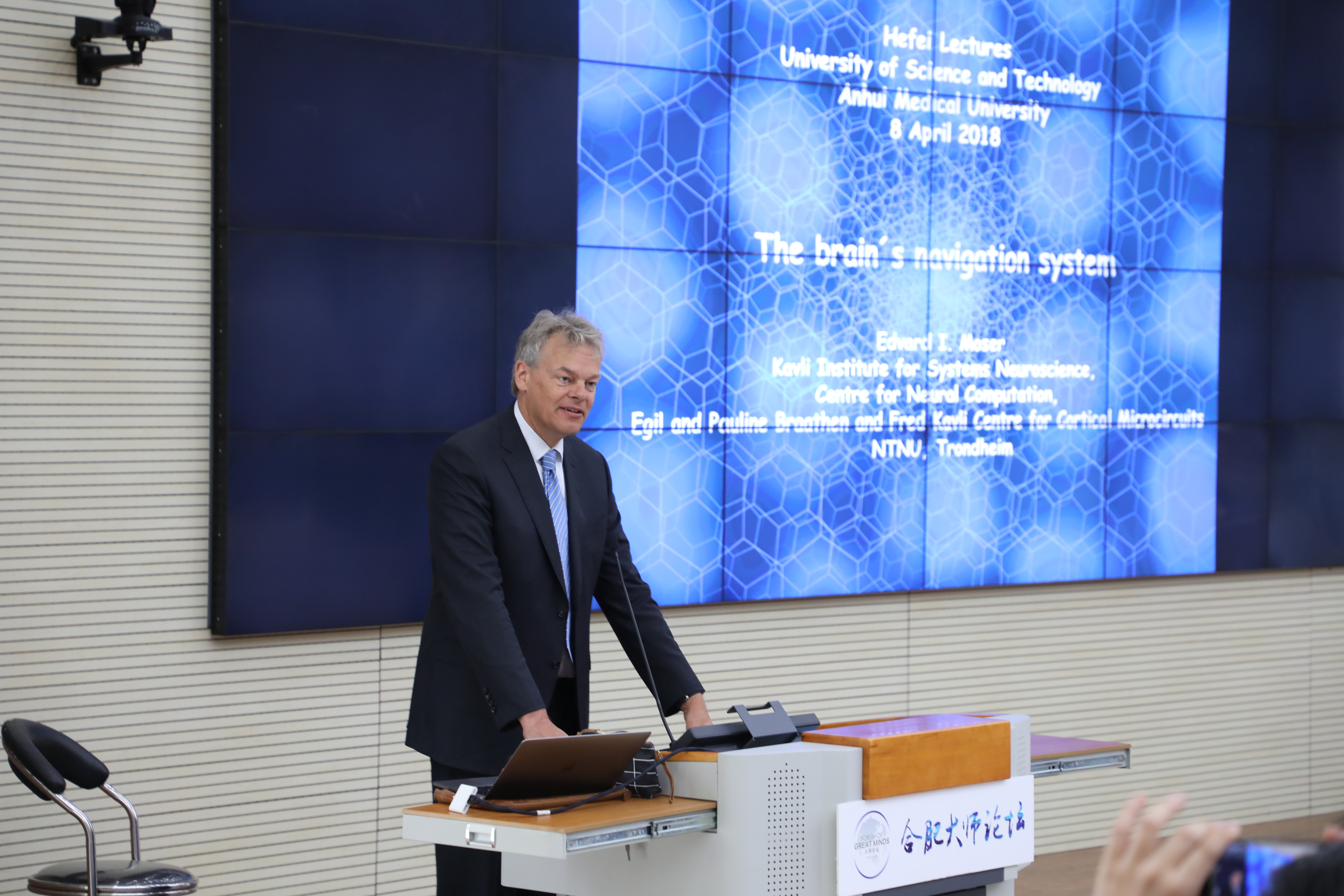 会谈结束后,Edvard I. Moser教授在西区第三教学楼多媒体教室作了题为The brain?s navigation system的报告。报告会由申勇教授主持,潘亚群局长在会前做了致辞。