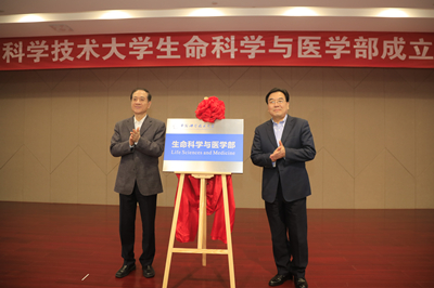 韩启德与信长星为中国科大生命科学与医学部揭牌