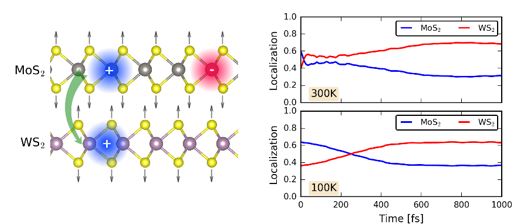 图二. 声子辅助的MoS2/WS2界面超快电荷转移