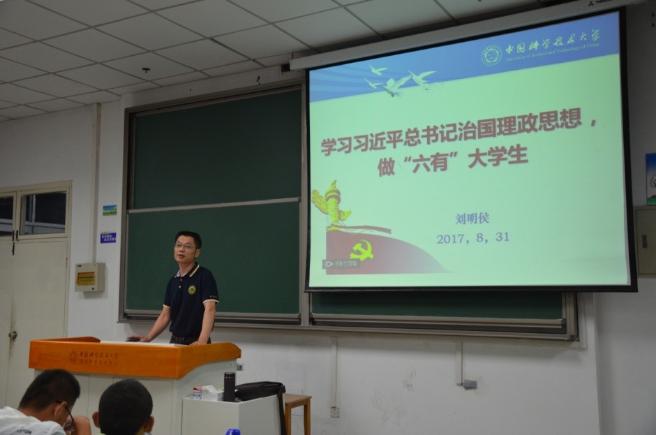 8月31日晚上,工程科学学院在3C101教室举办新生团课。2017级223名本科新生听取了学院党委书记刘明侯教授的“学习习近平总书记治国理政思想,做六有大学生”团课讲座。参加团课的还有院党委副书记赵钢,团委书记于倩,新生班主任等。