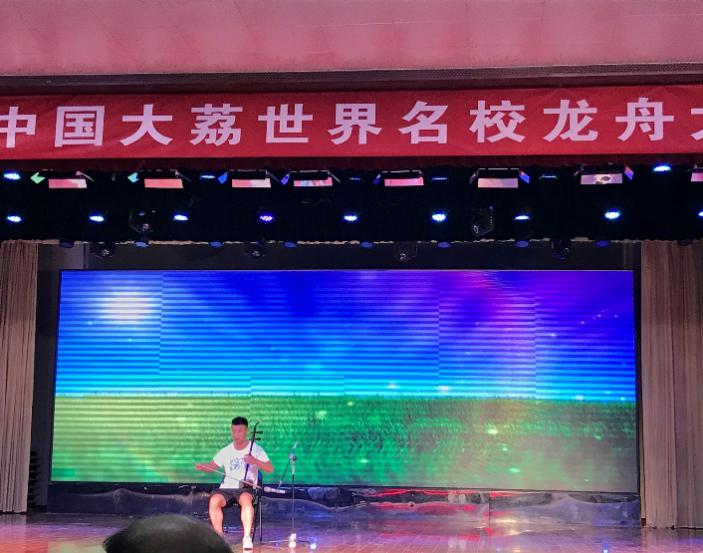 晚上是中外名校大联欢环节,这也是各学校展示自己的机会。中国科大龙舟队选择一首二胡名曲《赛马》向国内外同学展示中华才艺,赢得满堂喝彩。联欢期间,各大学代表队互换纪念品、交流比赛心得、训练方法等。