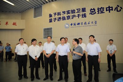 会后,在校领导和有关部门负责人的陪同下,刘伟平一行与安徽省委书记、省人大常委会主任李锦斌,安徽省委常委、组织部部长、常务副省长邓向阳及安徽省、合肥市有关部门负责人等实地考察了学校部分科研机构。在国家同步辐射实验室,听取了实验室主任陆亚林关于研究领域、研究目标、研究成果等方面的工作介绍。在量子科学实验卫星和量子通信京沪干线总控中心,听取了潘建伟院士关于量子京沪干线和量子科学实验卫星运行情况的汇报。