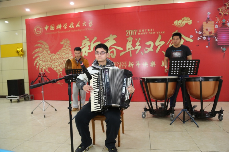 联欢会上,同学们表演了精心准备的节目。手风琴协奏曲《春节序曲》拉开了联欢活动的序幕,《校园脱口秀》真实反映了科大校园中同学们学习生活的点点滴滴,《今天》《那么骄傲》唱出了科大学子的自信。