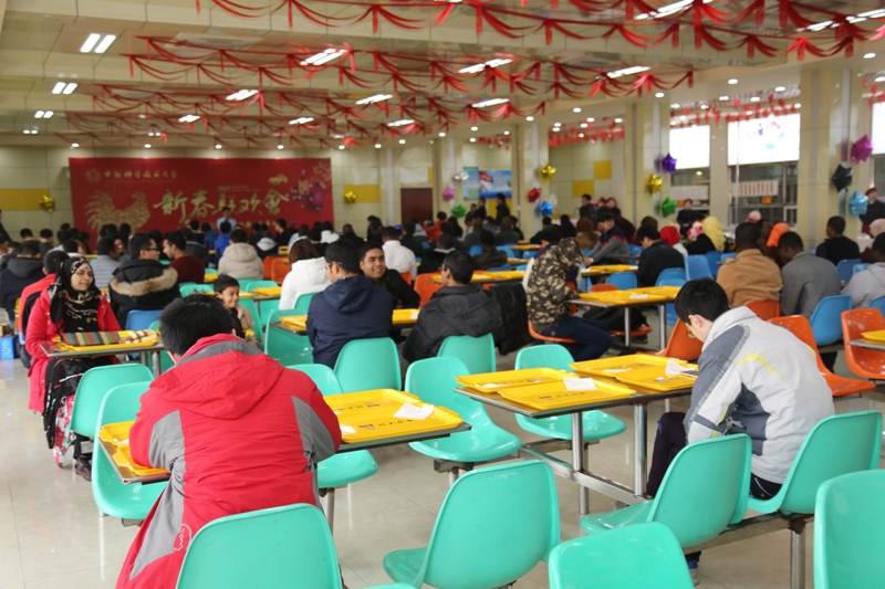 随后,学校为寒假不回家同学安排了自助餐,并为所有参加活动的同学准备了一套清真糕点。丰盛可口的饭菜、充满热情的服务,深受大家的好评。