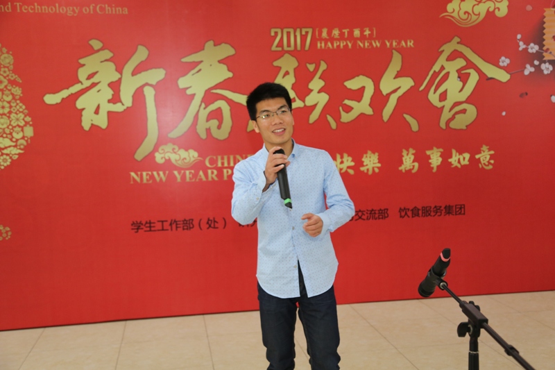金猴辞旧岁,雄鸡报春来。1月27日中午,学生工作部处、研究生院、国际合作与交流部及饮食服务集团在东校区东苑二楼餐厅联合举办新春联欢会,给寒假不回家的同学送上新年的祝福。校党委副书记蒋一、学生工作部处长董雨、国际合作与交流部部长侯中怀、保卫与校园管理处处长洪军、饮食服务集团总经理顾韬、数学科学学院党委副书记杨晓果,院系学生工作负责人代表、主办单位有关人员,以及寒假留校学生共380余人参加了新春联欢会。联欢会由董雨主持。