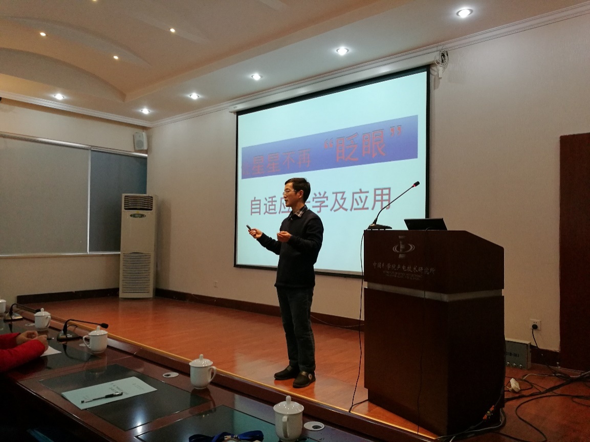 在学术交流阶段,光电所研究生部向银辉老师作了题为《让星星不再“眨眼”——自适应光学及应用》趣味科普报告。他从伽利略望远镜谈起,以“星星眨眼”作比喻,引出了自适应光学要解决的问题,重点介绍了自适应光学的基本原理以及众多的应用领域。说到动情处,他自豪地说道:“同学们,以前我们是模仿欧美的技术,现在我们不仅仅是跟着人家走,我们要跑在他们前面。”杨平研究员作了固体激光领域的学术报告。他介绍了几位奋斗在一线的杰出青年科研工作者的事迹,鼓励同学们在学习和科研工作中要自信、有魄力,敢为人先。随后,他介绍了国内外在固体激光领域的发展动态和挑战,并与同学们分享了自己指导研究生的心路历程。黄永梅研究员带来了《空间量子激光通信捕获跟瞄望远镜技术》报告。她首先回顾了光电所与中国科大在量子通信领域的密切合作,简要介绍了光电所在世界首颗量子科学实验卫星“墨子号”项目中的工作,重点给同学们普及了激光通信捕获跟瞄望远镜发展动态和工作原理等。