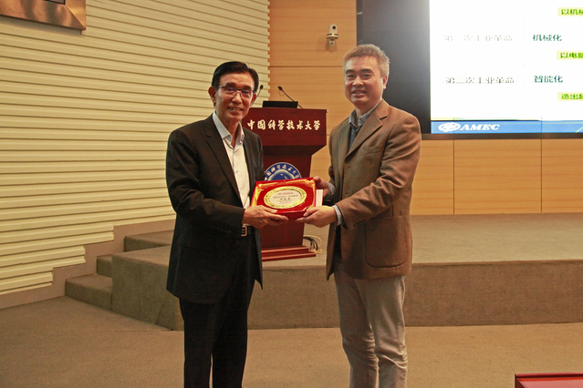 尹志尧回顾了自己考入中国科大的经历,表示非常欣慰看到科大在科学研究和人才培养上取得的成就。他说,很多科大毕业的校友为半导体行业做出了重要贡献,中微半导体设备公司有14位科大毕业生,在公司的各方面起到了关键作用,尤其是在技术研发领域。随后,尹志尧介绍了半导体微观加工设备的重要性、集成电路和设备产业的历史、集成电路的制成和发展趋势、微观加工的关键设备、集成电路制造和设备产业的挑战性、我国集成电路和设备产业的发展形势、中微半导体设备公司的发展概况和对未来第三次工业革命的畅想,使在场师生对半导体产业的发展历史、基本技术原理、发展重要性、国际前沿技术水平和半导体产业在我国的发展现状及发展前景有了更加深入的认识。