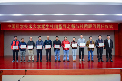 蒋一对学生社团指导老师和社团顾问的辛勤工作给予了充分肯定和诚挚感谢,并就进一步加强和改进学生社团工作提出要求。他指出,学生社团指导老师要具备高校教师应有素质,言传身教、为人师表,要潜心立德树人,促进学生成长成才,着力培养德智体美劳全面发展的社会主义建设者和接班人。学生社团作为提升学生综合素质的重要平台,根本任务就是育人,希望学生社团能够秉承中国科大红专并进的传统,树立家国情怀,把科大文化与社团发展融为一体,帮助广大同学形成独立思考、明辨是非和分析问题的能力。学校会一如既往地为学生社团发展提供条件保障,进一步完善指导老师工作量考核机制,支持学生社团开展丰富多彩的活动。