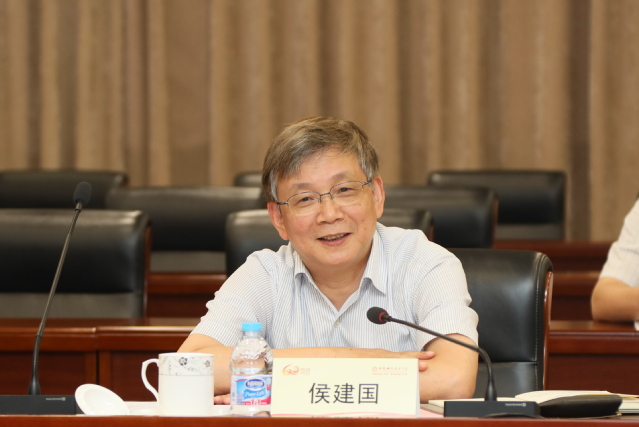 侯建国在座谈会上发表讲话。他说,这次回到科大调研见到了很多老同事、老朋友,感觉非常亲切。近年来,中国科大在中科院党组和学校党委的领导下,勇于创新、敢于超越、力争一流,党建思政、队伍建设、学科发展、人才培养、科学研究、园区建设等各项工作都取得了可喜进展。