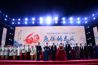 9月19日晚,纪念中国科学技术大学建校六十周年“永恒的东风”校友师生联欢晚会在学校东区操场圆满落幕。国内外著名大学校长,两院院士,中国科学院院机关、各分院、研究院所的领导,合作方代表,兄弟单位代表,各地校友会代表,学校老领导,现任校领导,校内各机关部处、各学院、各直属单位领导,返校校友和在校师生共计四千余人现场观看演出。