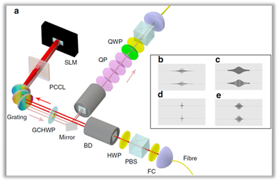 李传锋研究组在光学系统中完成了这一任务。他们把单个光子的偏振作为量子比特,而光子的频率作为环境,构造出完全可控相位演化量子模拟器。研究组通过巧妙的光路设计,把光子的频率分布转化到空间分布,并把两种偏振的光转变成两束平行光输入到空间光调制器上,通过对空间光调制器的编程控制可以构造出光子的任意频率分布和相位分布,从而实现任意的相位消相干过程。作为实例,研究组利用可控相位消相干量子模拟器研究了一个和横场伊辛(Ising)链相耦合的量子比特,展示了它在顺磁相、铁磁相以及相变点的三种完全不同的相位消相干过程。