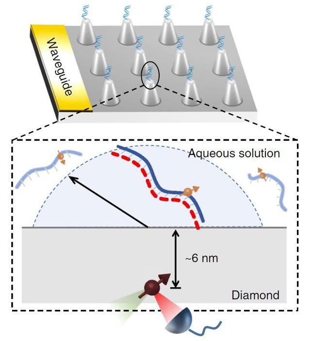 图注:基于钻石传感器实现水溶液中的DNA分子探测