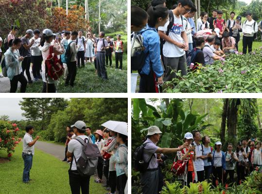 实习期间,植物园的老师们还带同学们参观了许多专业园。从鲜花婀娜的百花园,俊秀挺拔的棕榈园,到千姿百态的奇花异卉园,凝结智慧的南药园,同学们穿梭在热带植物之间,感受着没有花蕊的软枝黄蝉的奇异,新型块茎类作物木薯的价值,会随着歌声舞动的跳舞草的有趣。