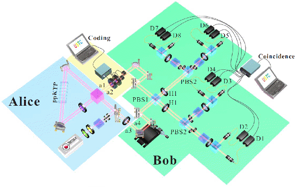 相比比特系统的二维纠缠,高维纠缠具有信道容量高、抵抗窃听能力强等优势,近年来被学术界广泛关注。李传锋、柳必恒等人在自主研制的高品质三维纠缠源[PRL 117, 170403 (2016)]基础上,进一步制备出偏振-路径复合的四维纠缠源,保真度达到98%。他们利用这种四维纠缠源成功识别了五类贝尔态,并实验演示了量子密集编码,一举把量子密集编码的信道容量纪录提升到了2.09,超过了两维纠缠能达到的理论极限2,充分展示了高维纠缠在量子通信中的优势,为高维纠缠在量子信息领域的深入研究打下重要基础。