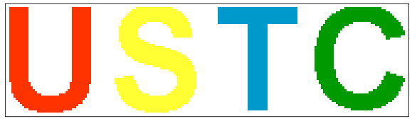 图二,利用高维密集编码传输五色的中国科学技术大学英文简写(USTC)的实验结果。