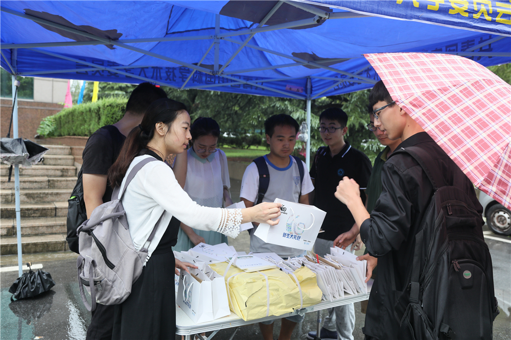 在报到现场,新生不仅可以领取校徽和校园一卡通等物品,还能收到学校赠送的一份新生大礼包,礼包内装有《本科学习指南》《学生手册》《生活指南》等。此外,各院系还为新生准备了各具特色的报到礼包,方便新生快速获知校园生活的方方面面,了解本学科的最新资讯。