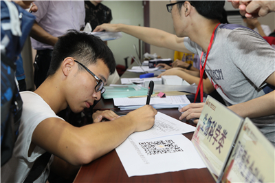 今年,学校为了更好地服务远道而来的新生和家长,进一步简化了入学程序。新生通过现场扫描学校设置在东区大礼堂内的二维码,查询报到环节,然后根据查询结果,持录取通知书前往各院系的报到处即可完成报到。新闻中心记者在现场看到,在绿色通道、交费处以及各报到处醒目的标志下面,新生有序地办理着相关手续。