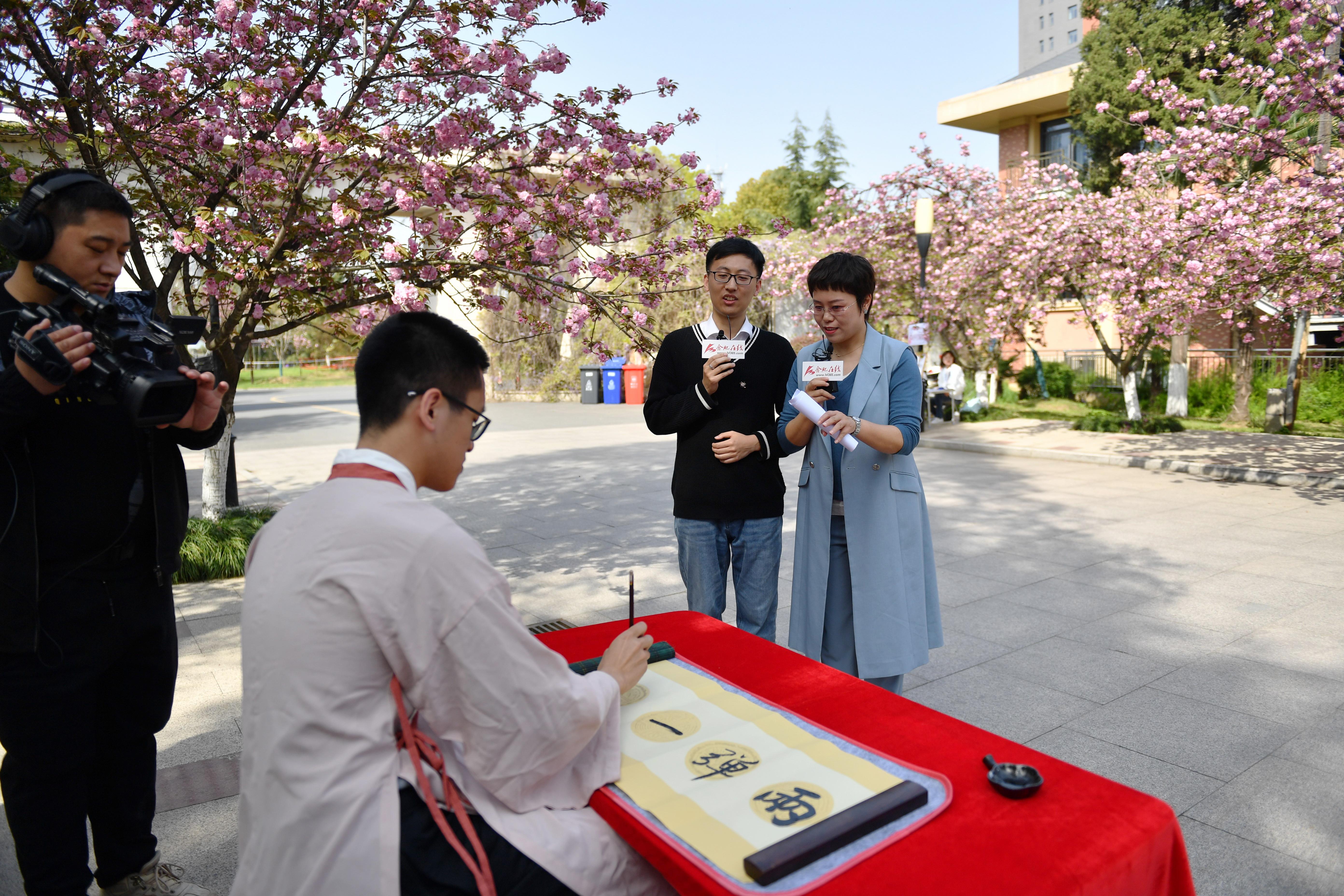 今年的“云赏樱”恰逢中国科大第五届溯风传统文化月开幕,美不胜收的樱花与底蕴厚重的文化,交织出校园靓丽的春光。东区樱花大道上,书法、古琴、二胡、舞蹈、轮滑、朗诵等表演精彩纷呈,处处可感受到新时代大学生的文化自信和青春气息。西区樱花坡上,教职工老年合唱团倾情演绎《再唱山歌给党听》。“迎接着永恒的东风,把红旗高举起来,插上科学的高峰……”校歌《永恒的东风》,雄壮而豪迈,代表着一代代科大人薪火相传、接力奋进的精神传承,“云赏樱”最后在老年合唱团、学生合唱团的接力合唱校歌中落下帷幕。