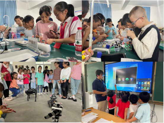 在张畈小学(我校帮扶村龙马村与临近张畈村、杨树村三村共建的小学校)校园内,化学与材料科学学院、工程科学学院、人文与社会科学学院的老师同学们为80余名小学生们展示分子模型搭建、碟中惊变、热缩片、可乐喷泉、优美的科学、坐着时间去飞行、航模飞行、机器人演示等科技互动活动,临近的龙马村、张畈村、杨树村三个脱贫村孩子们的好奇心、求知欲、创造力在互动活动中被充分激发。