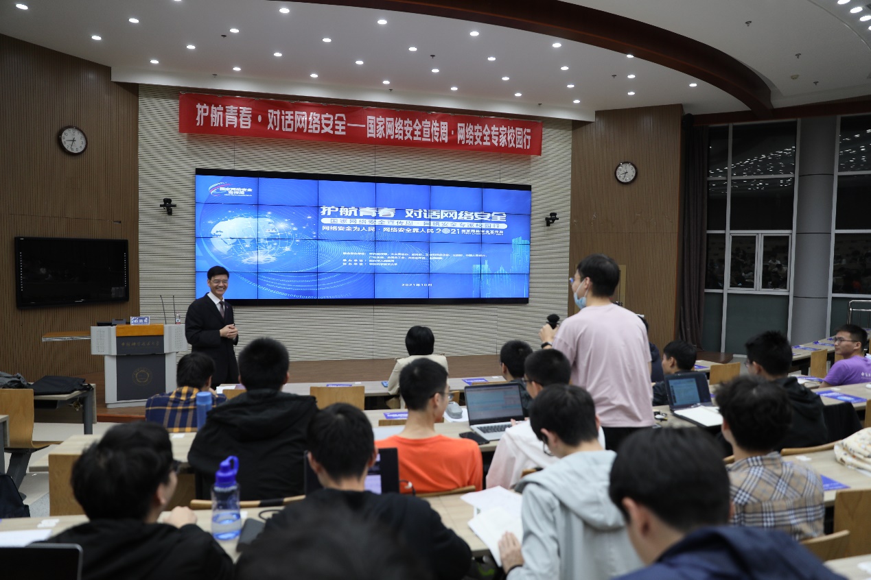 10月14日,中国科学技术大学在西校区举办护航青春?对话网络安全——国家网络安全宣传周?网络安全专家校园行主题活动,学校党政办兼网信办副主任彭慧,信息与智能学部党委副书记、网络空间安全学院书记谭勇,网络空间安全学院执行院长俞能海,网络信息中心信息部主管夏玉良等出席此次活动。