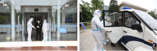 14:00,演练正式开始。保卫与校园管理处立即实施校园静态管理,完全封闭宿松路及太湖路门,封闭金寨路大门出口;在大礼堂南侧厅设立生活物资存放区,大礼堂东侧设立防疫物资存放区。
