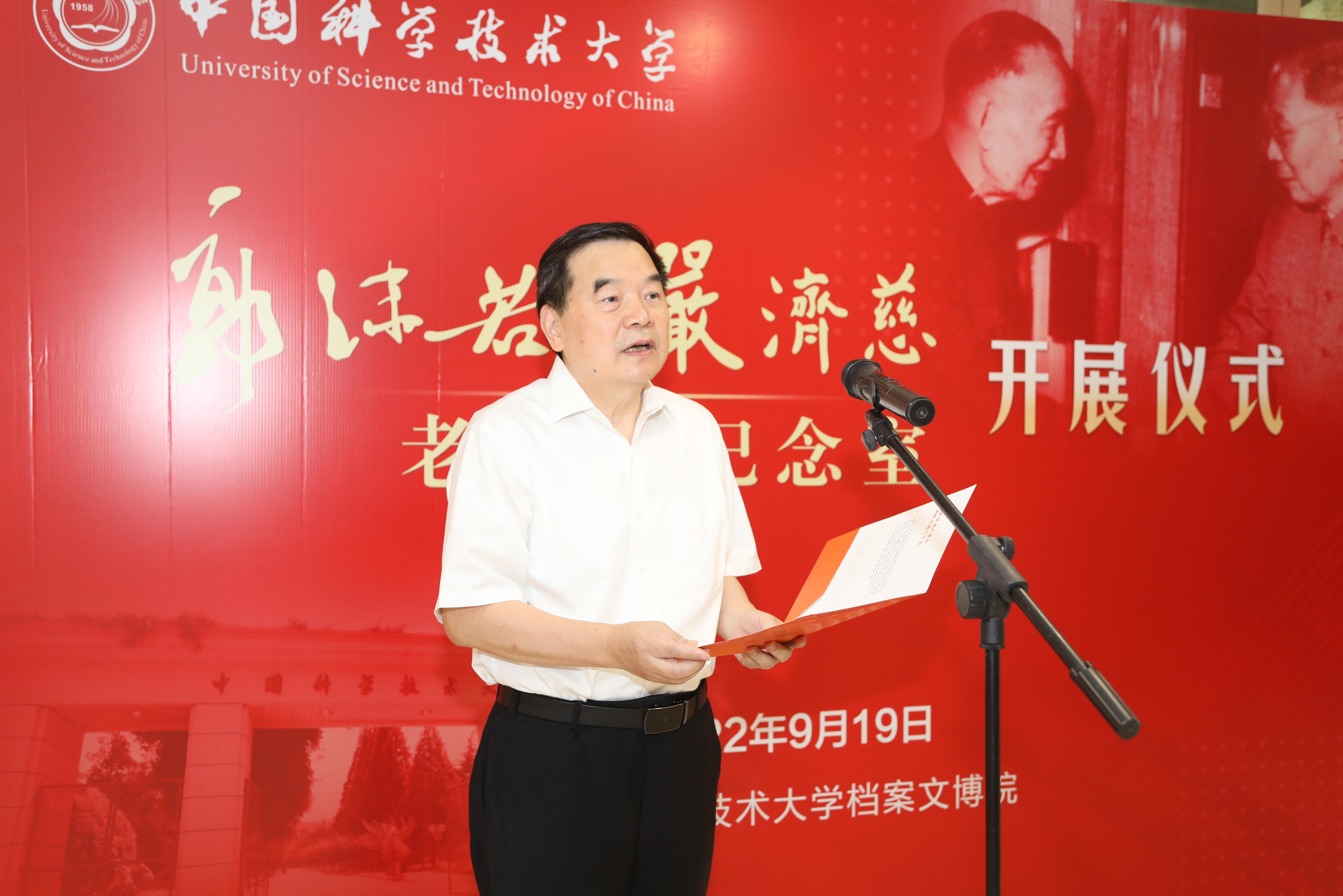 包信和校长在讲话中表示,郭沫若作为文学巨匠,尤其重视校园文化建设。他亲自起草的校歌承载了中国科大红专并进、科教报国的理想。他确立的校风校训作为学校建设发展的强大精神力量,激励着科大人潜心立德树人,执着攻关创新。严济慈一生追寻“科学之光”,爱国报国是他矢志不渝的信念。中国科大成立后,他将主要精力都投入到为祖国培养尖端科学技术研究型人才上来,以实际行动践行了“为党育人、为国育才”的初心使命。