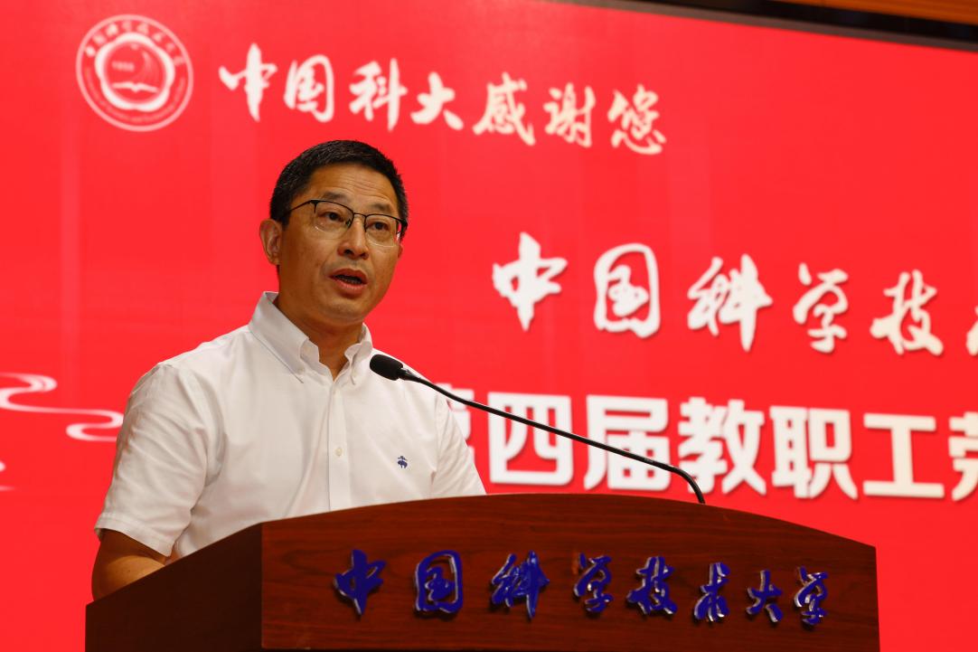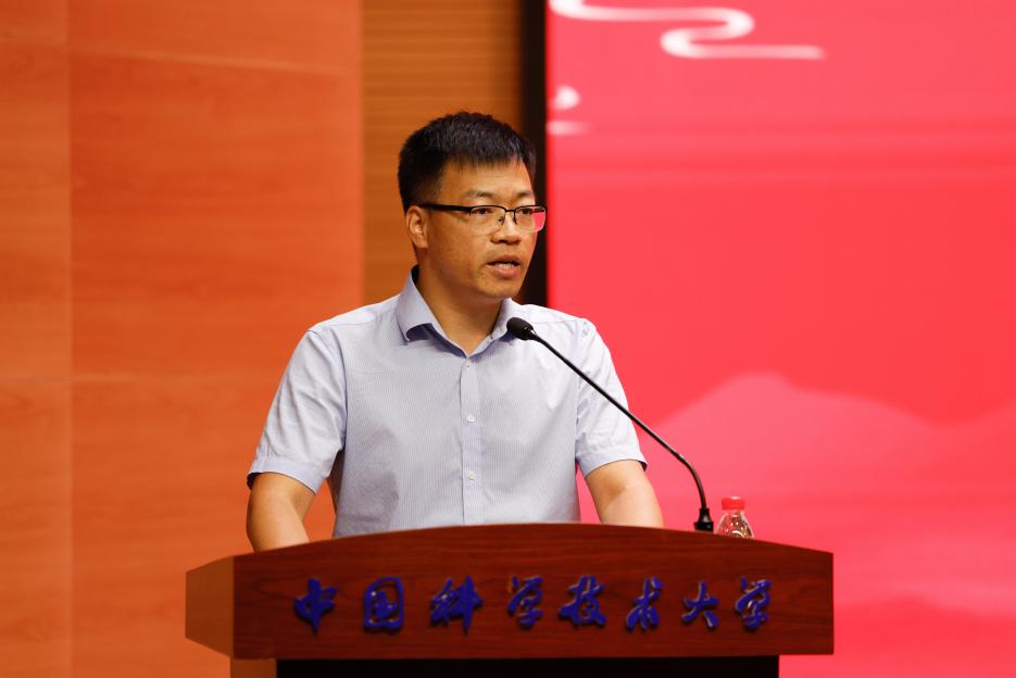 生命科学与医学部包巍老师作为新进教职工代表发言。他首先感谢前辈们为科大的发展作出的卓越贡献,是他们成就了独树一帜的科大精神、璀璨夺目的科大事业。作为新入职的教师,将带着前辈们对科大未来的期许,把科大的精神和科大的事业传承好,薪火相传,传承科大人顶天立地的荣耀。