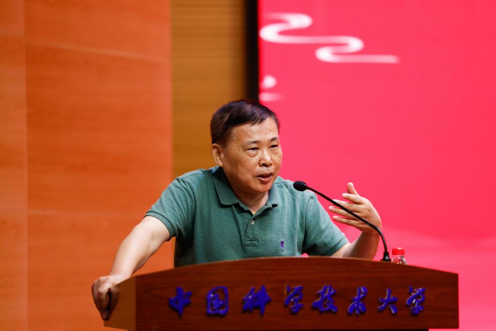 典礼上,荣休教职工代表发言。化学与材料科学学院荣休教师张其锦老师回顾了自己第一次来到科大的场景,转眼40多年过去了,他对现在学校的变化感慨万千,并且真正的感觉到这是历届荣休教师们的共同努力,荣休的同事们是将自己的终身献给了校园。