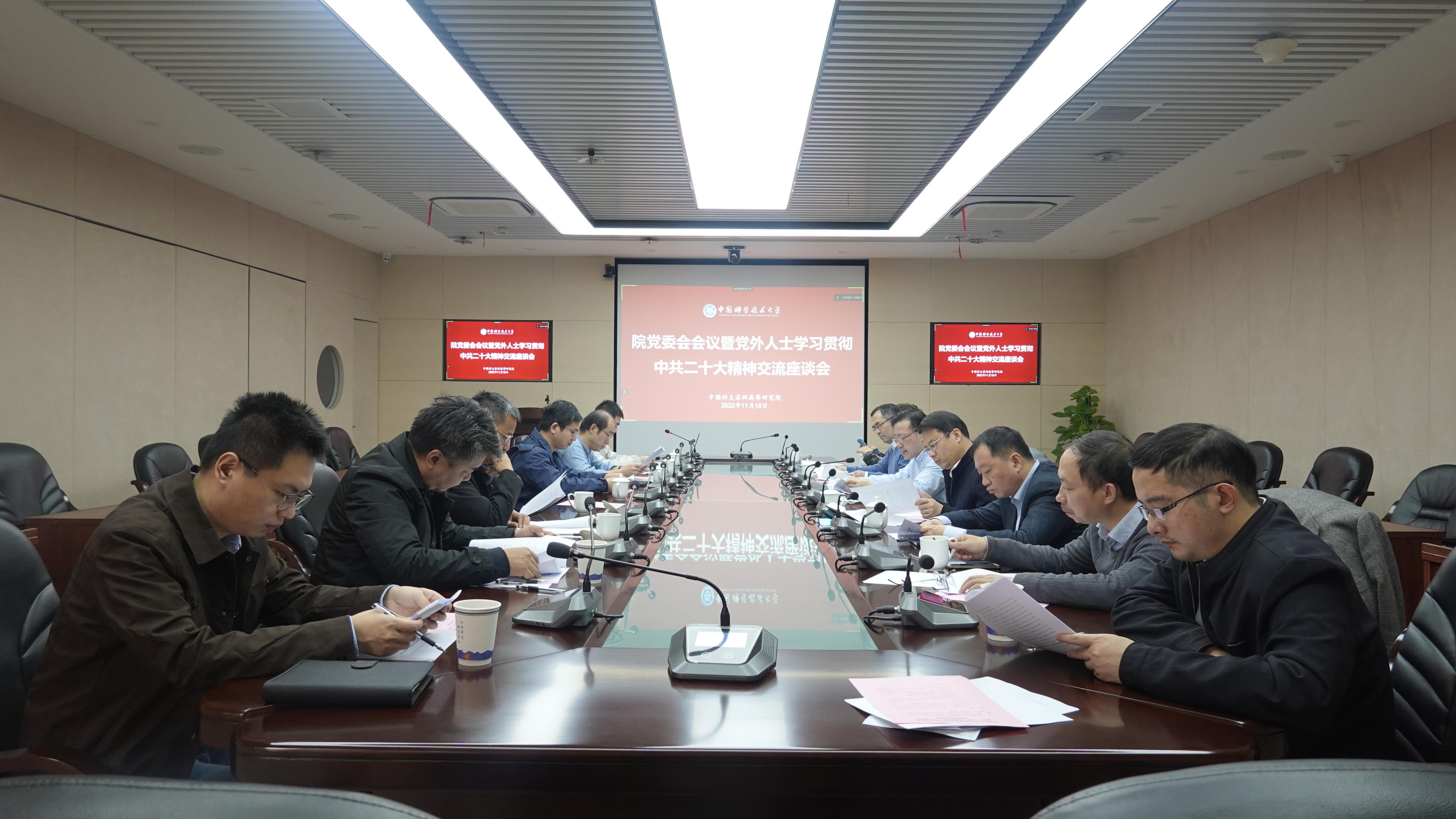 苏州高等研究院召开党委会议暨党外人士学习贯彻中共二十大精神交流座谈会