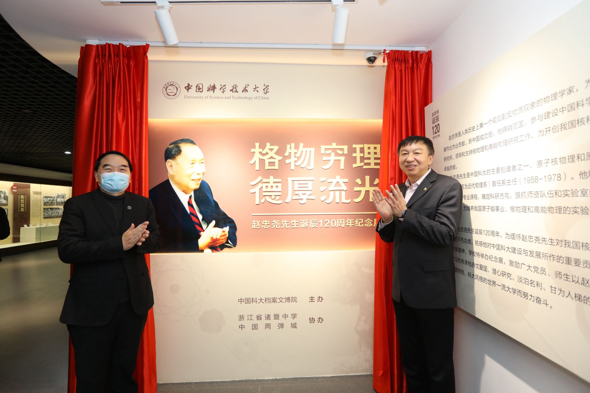 12月12日上午,学校在东区师生活动中心六楼博物馆举行“格物穷理德厚流光——赵忠尧先生诞辰120周年纪念展”揭幕仪式。校党委书记舒歌群、校长包信和共同为展览揭幕。党委常委、副校长杜江峰主持仪式。学校部分师生代表参加仪式。