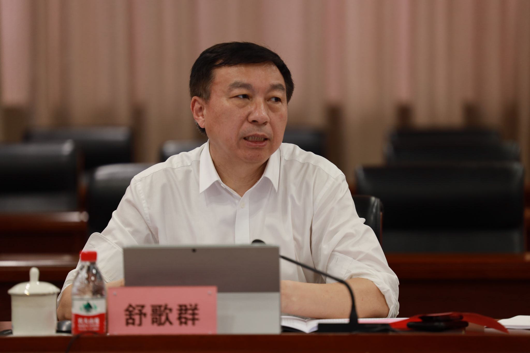 6月7日下午,学习贯彻习近平新时代中国特色社会主义思想主题教育领导小组召开第五次全体会议,主题教育领导小组组长、校党委书记舒歌群主持会议并讲话,主题教育领导小组及其办公室成员、工作组成员参加会议。