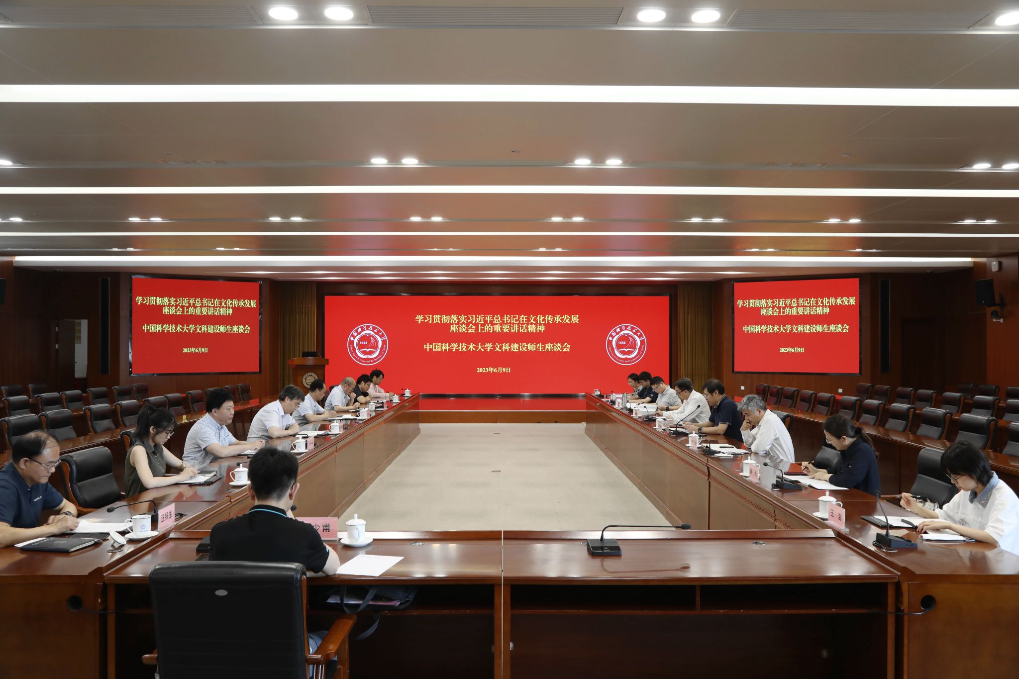 舒歌群指出,习近平总书记在文化传承发展座谈会上的重要讲话为我们担负新的文化使命指明了前进方向,为人文社会科学的发展提出了新命题、新任务、新方法。全校上下要进一步提高站位、统一思想、增进认识,深入学习习近平总书记在文化传承发展座谈会上的重要讲话精神,准确把握中华文明的“五个突出特性”,深刻理解“两个结合”的重大意义,共同创造属于我们这个时代的新文化。要用习近平新时代中国特色社会主义思想指导中国科大文科发展,瞄准国家需求、面向社会需要、把握问题导向、坚持创新驱动,推动以“科”字号为特色的人文社会学科建设。要加快高水平队伍建设,不断拓展发展空间,加强学科交叉融合,完善课题“揭榜挂帅”机制,为在新的历史起点上继续推动文化繁荣、建设社会主义文化强国作出更多中国科大贡献。
