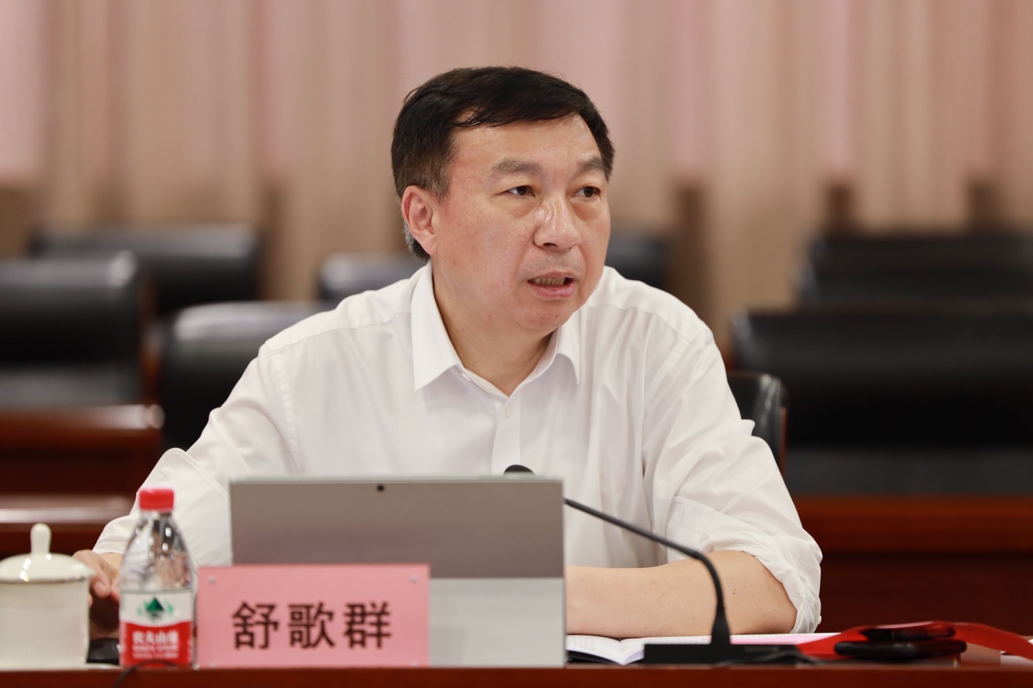 会上,与会人员通过观看新闻视频,集中学习习近平总书记在文化传承发展座谈会上的重要讲话,自学《人民日报》评论员系列文章《努力建设中华民族现代文明》《深刻把握中华文明的突出特性》《深刻理解“两个结合”的重大意义》。舒歌群领学习近平总书记关于文化传承发展的重要论述。