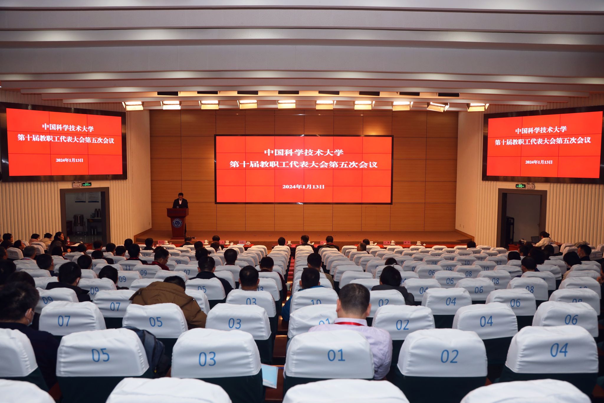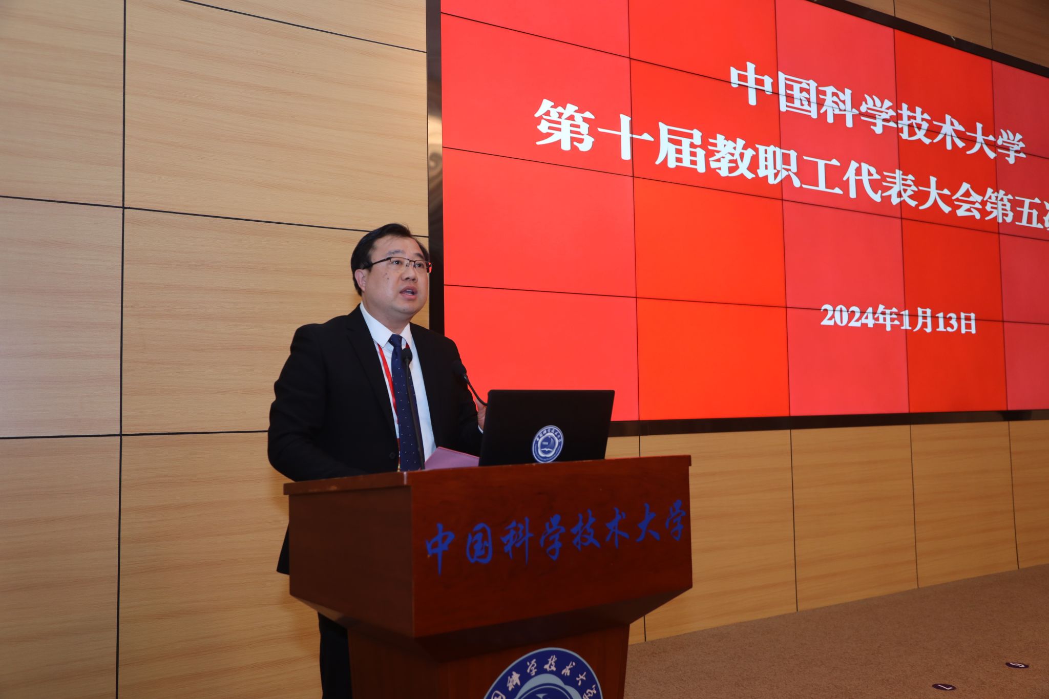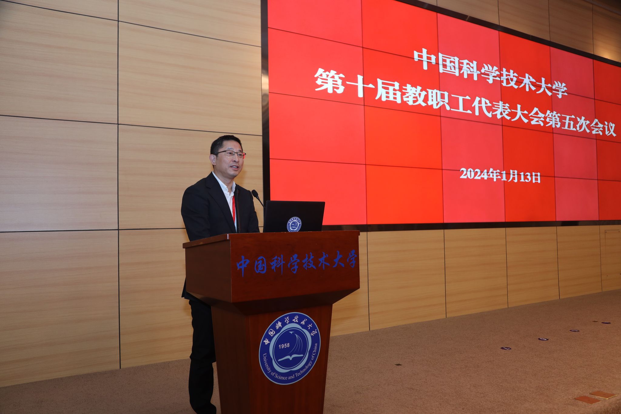 按照会议议程,周丛照宣读《中国科学技术大学第十届教职工代表大会第五次会议纪要》。会议号召,全校师生员工在校党委领导下,以习近平新时代中国特色社会主义思想为指导,深入贯彻落实党的二十大精神和即将召开的中国科大第十三次党代会精神,深入推进“教育、科技、人才”一体部署,潜心立德树人,执着攻关创新,努力办出中国特色、科大风格的世界一流大学,为抢占科技制高点,为加快教育强国、科技强国、人才强国建设贡献科大力量。