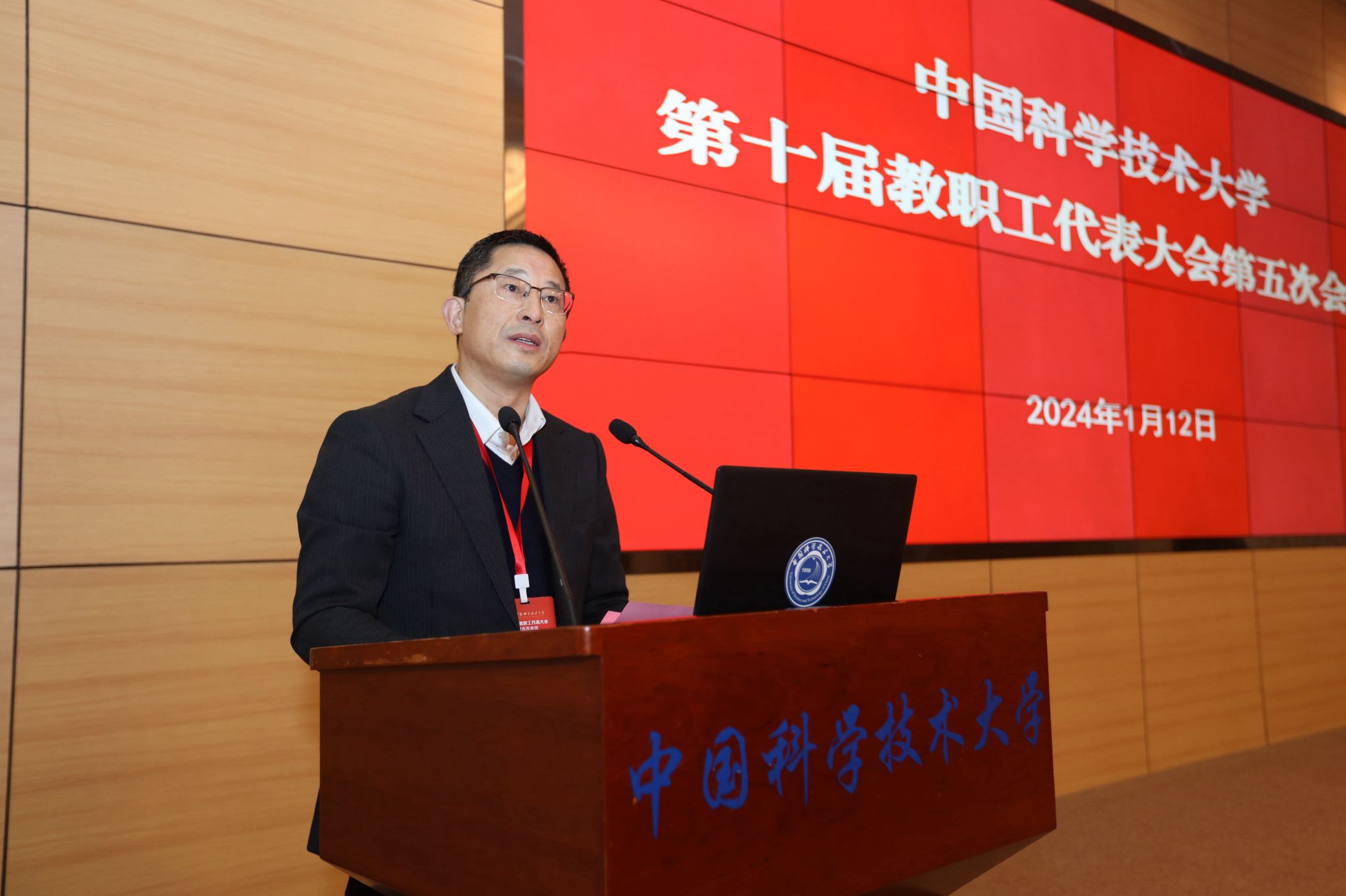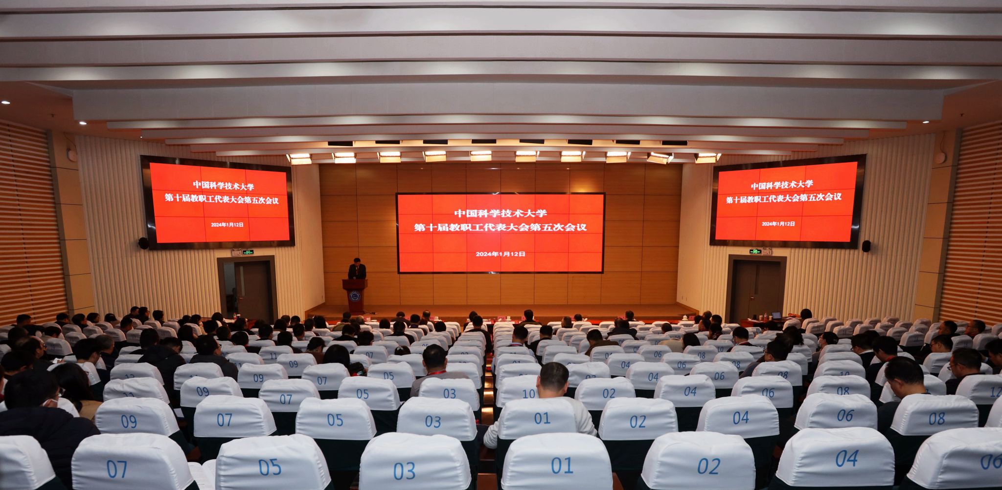 1月12日上午,中国科学技术大学第十届教职工代表大会第五次会议在理化大楼东三报告厅开幕。校党委书记舒歌群、校长包信和院士等在校校领导出席并在前排就坐,大会常务主席、校党委常委、副校长周丛照主持会议。本届教代会正式代表、特邀代表和列席代表出席大会。