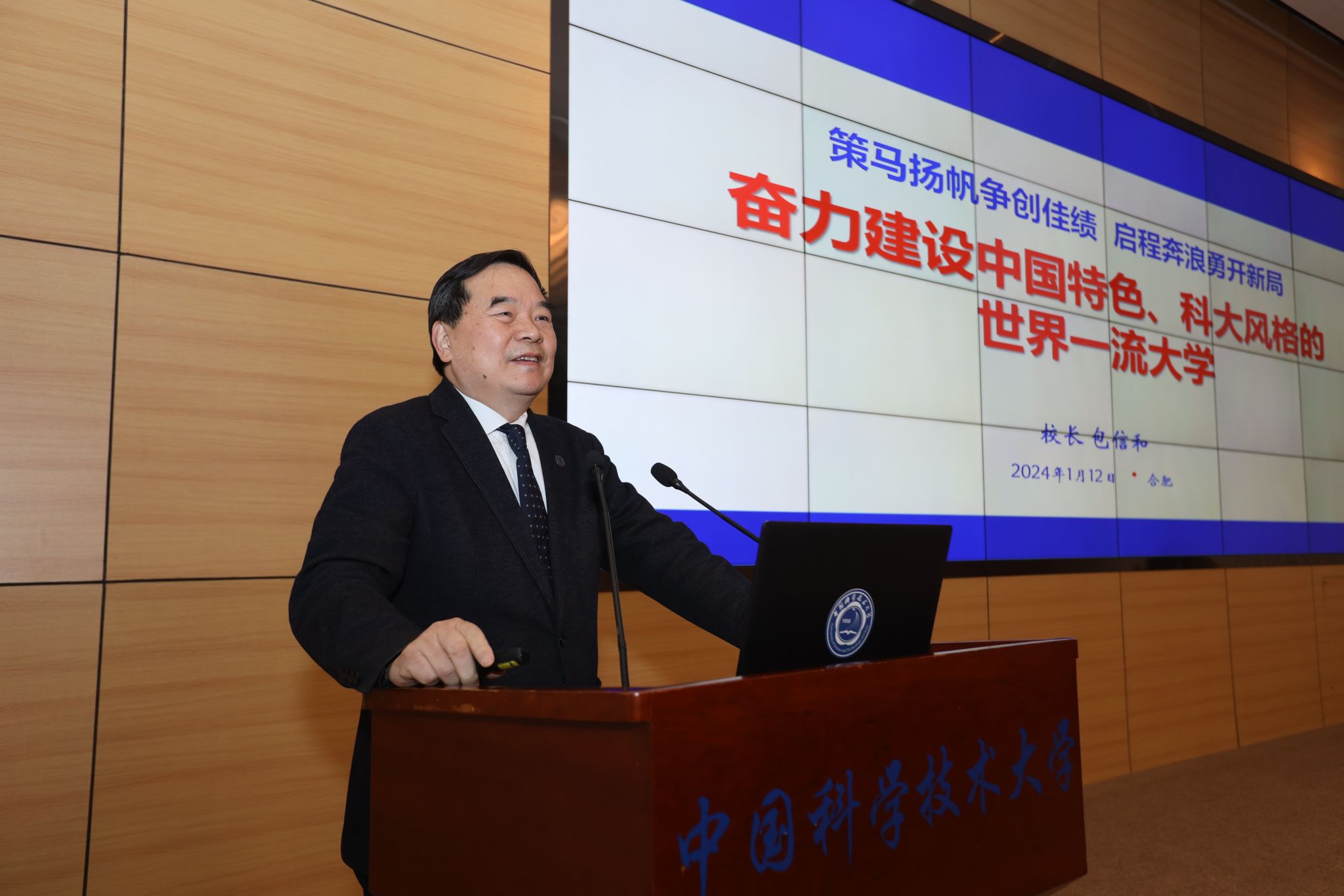 舒歌群表示,2024年是中华人民共和国成立75周年,是实现“十四五”规划目标任务的关键一年,也是学校第十三次党代会筹划召开之年,做好今年工作意义特殊、责任重大。学校要深入贯彻落实党的二十大关于统筹推进教育科技人才一体化发展的部署要求,始终牢记“潜心立德树人、执着攻关创新”两大根本任务,为加快建设教育强国、科技强国、人才强国作出新的更大贡献,谱写新时代中国科大人“科教报国、追求卓越”的崭新篇章。