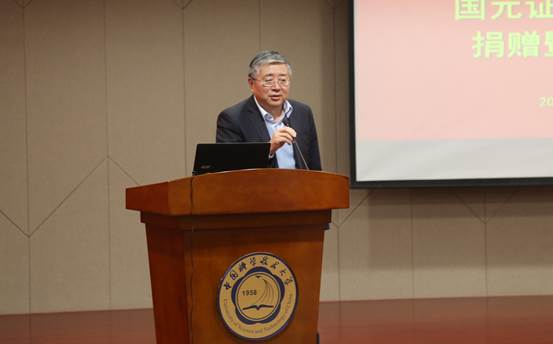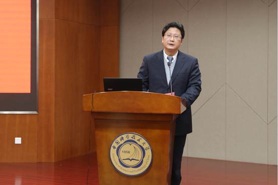 蒋一代表学校向蔡咏董事长一行来我校颁奖表示热烈欢迎,对国元证券向我校捐赠并设立奖助学金表示由衷感谢,对国元证券不忘社会责任、主动投身公益事业的做法给予了高度赞扬,向获得2017年度国元证券奖助学金的同学表示热烈祝贺。
