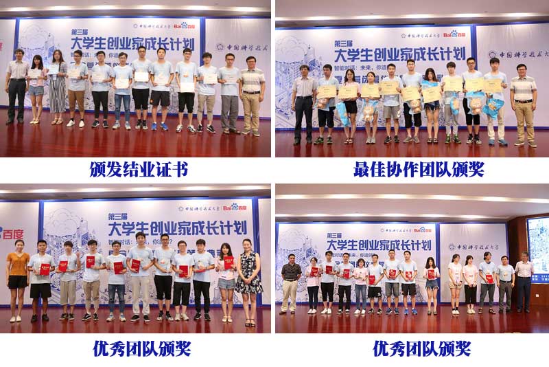 7月29日上午9时,由中国科学技术大学和百度公司联合举办的第三届全国大学生创业家成长计划夏令营在东校区师生活动中心举行闭营仪式暨颁奖典礼。中国科大副校长陈初升、百度公司增强现实实验室负责人吴中勤等出席活动并致辞。教务处、信息学院等相关单位负责人,百度公司校园品牌部负责人以及全体营员出席了闭营仪式。