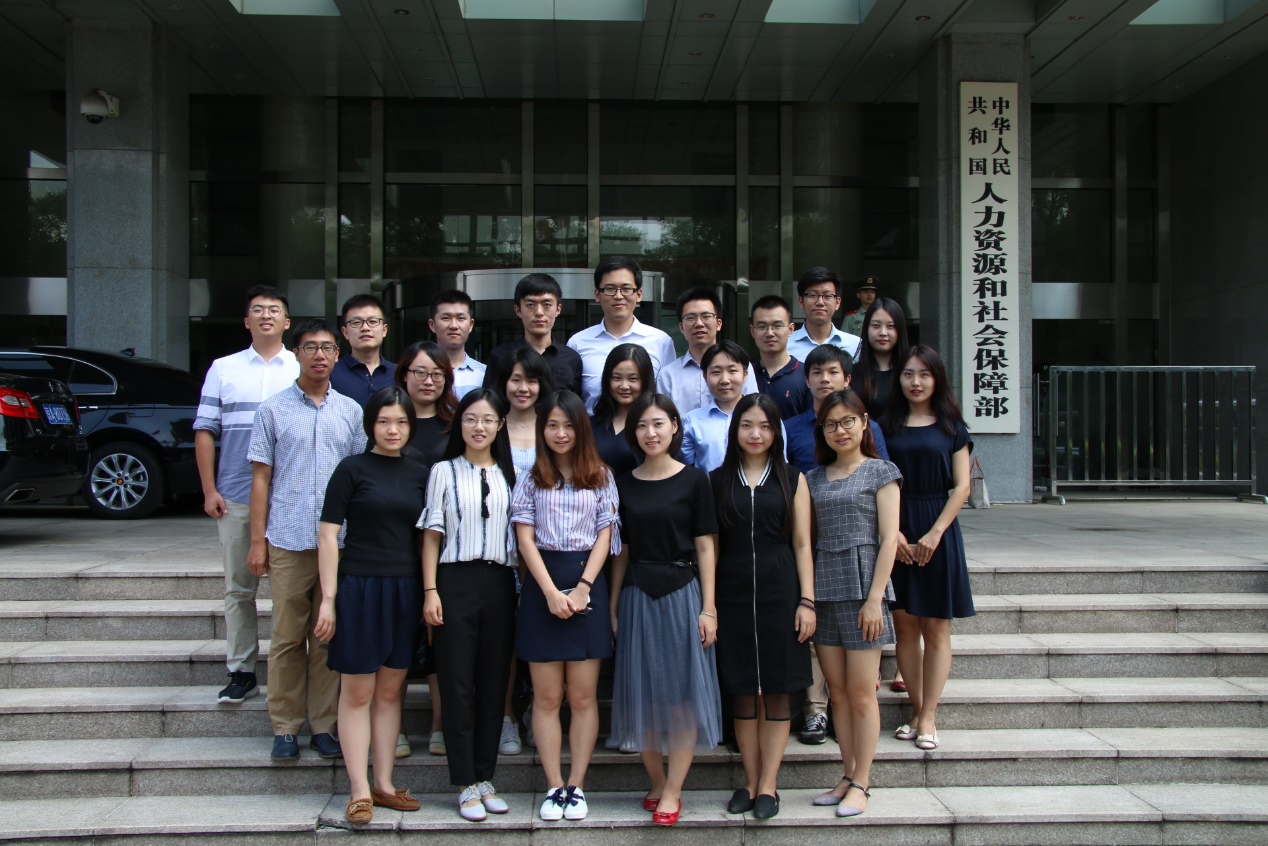 王瑞珉同学(二排右一)与人社部实习同事合影留念